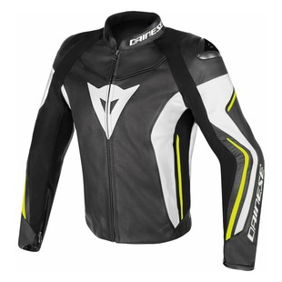 possibly buy the Dainese Assen Perforated Leather Jacket - Closeout (Color: Black/White/Fluo Yellow / Size: 58).